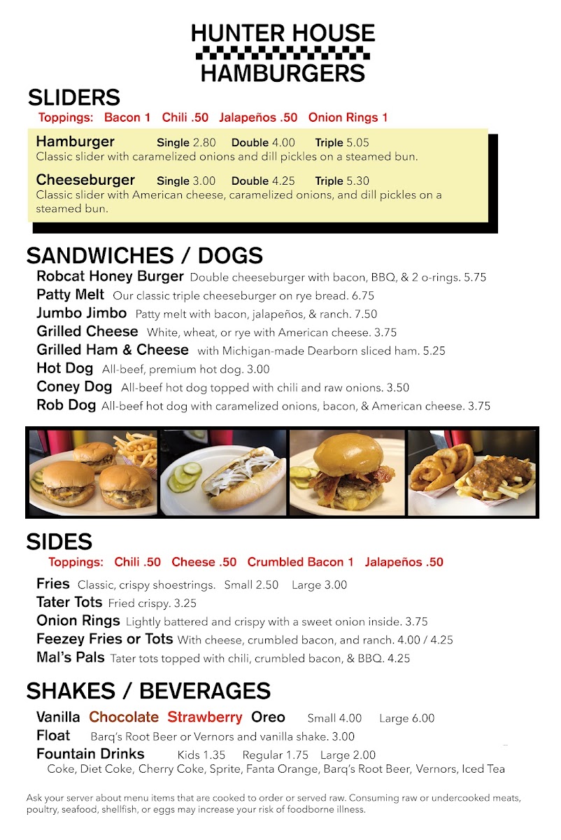 Welcome to Hunter House Hamburgers, a delightful gem nestled on Woodward Ave in Birmingham, MI. This retro diner proudly serves up an enticing menu centered around their highly acclaimed sliders, which perfectly combine the charm of classic diner fare with the innovation of smash burgers. Each patty is grilled to perfection, crowned with caramelized onions on a toasty bun, ensuring a flavorful bite every time.